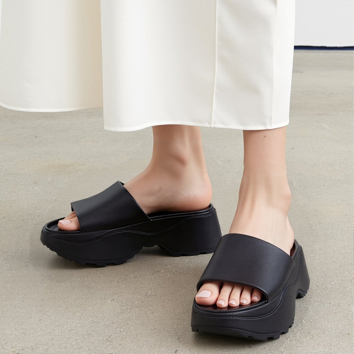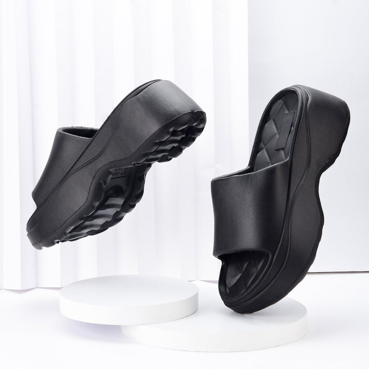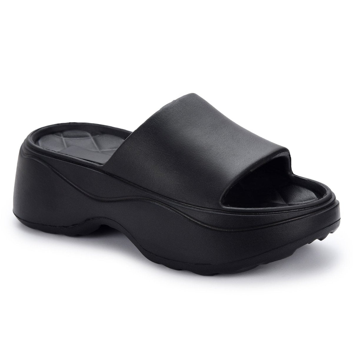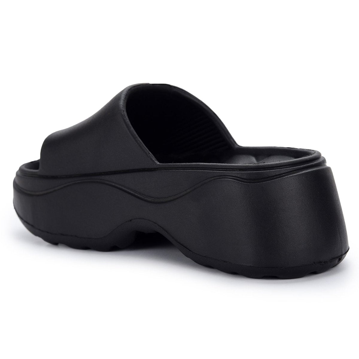 Black Casual High Ankle Platform Flip Flops Slippers For Women
