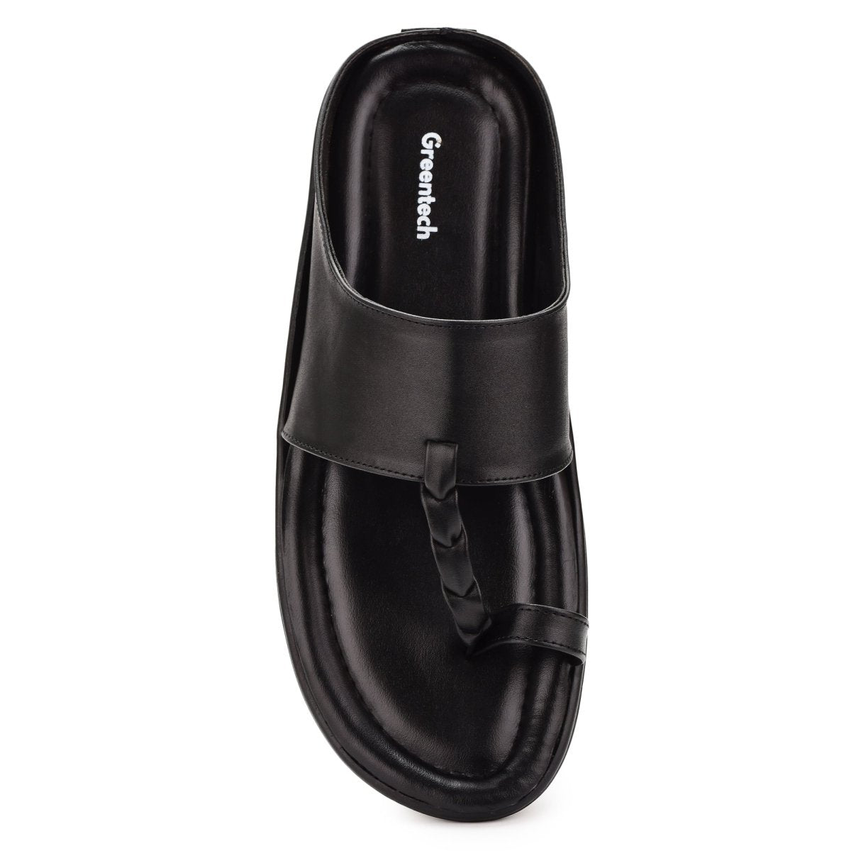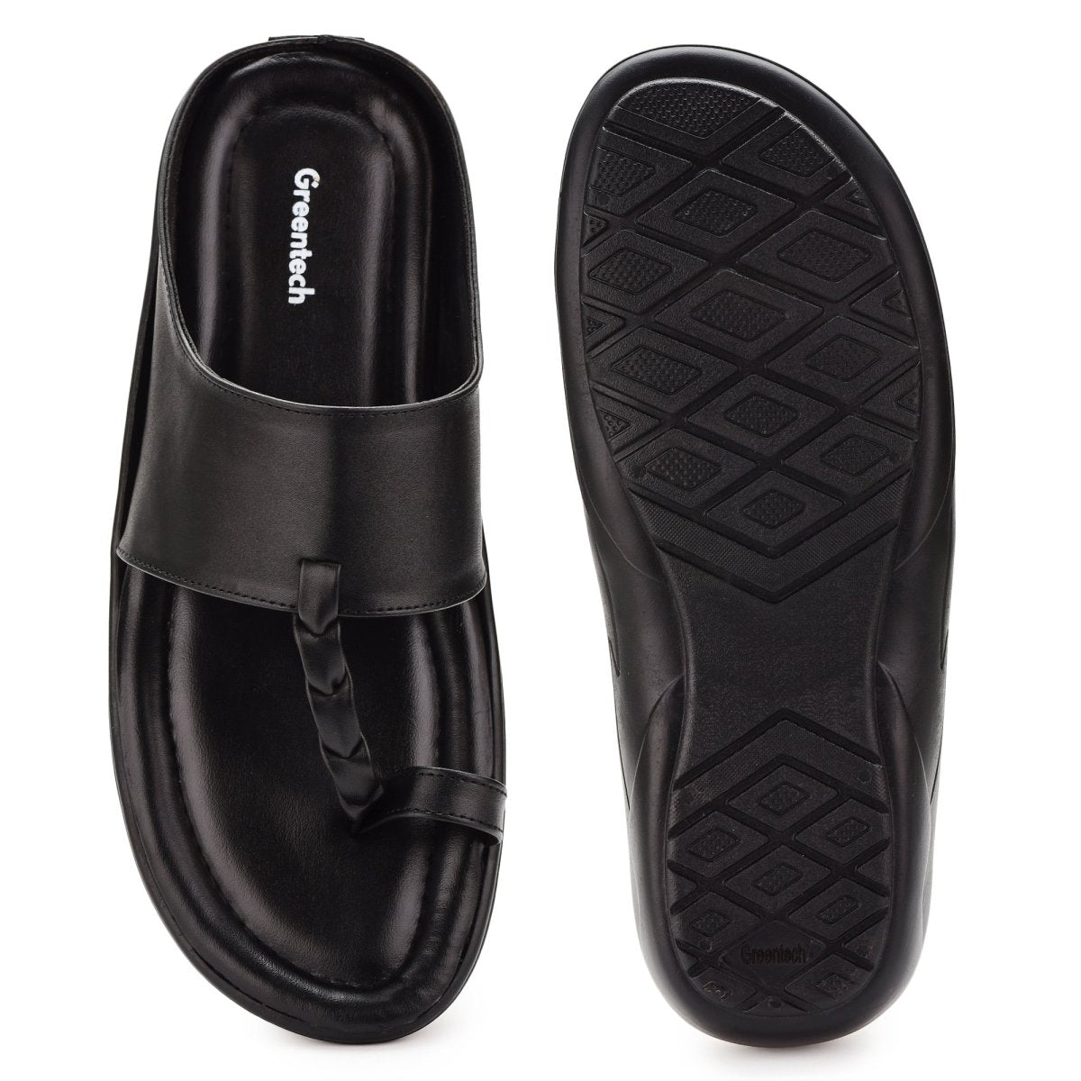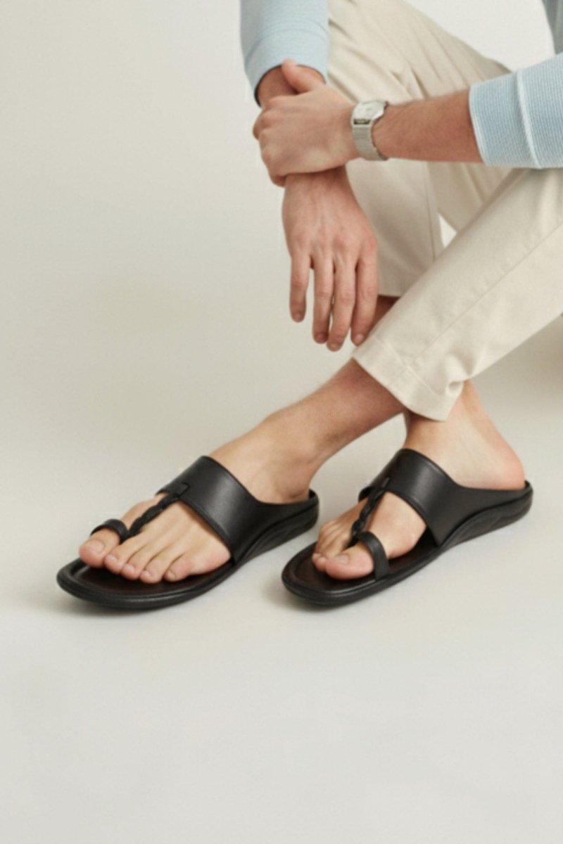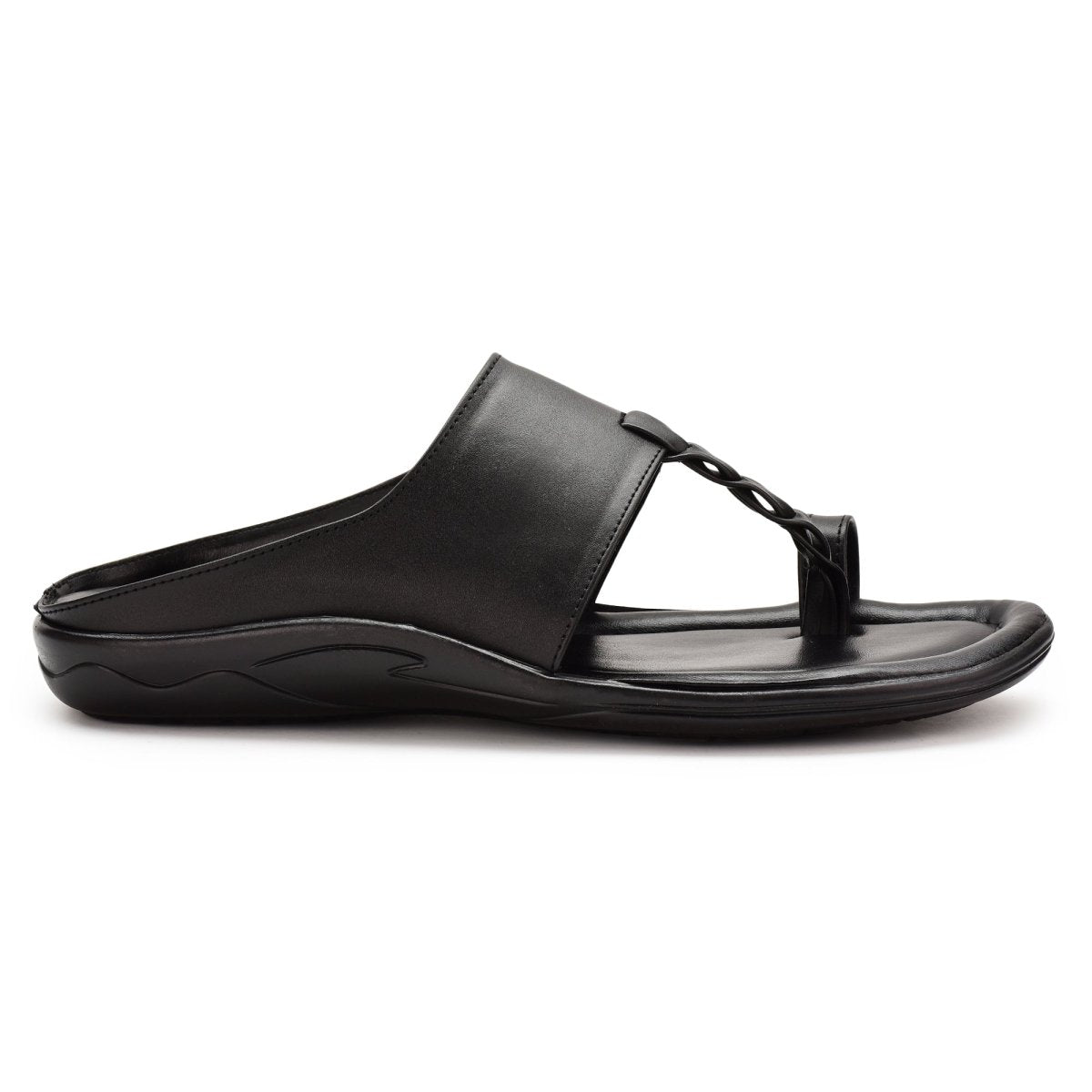 Black Classic Kolhapuri Slipper Slip On Sandals For Men