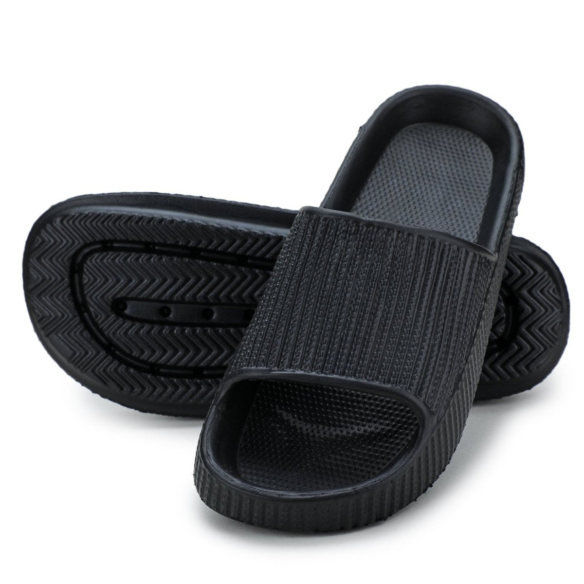 Black Solid Casual Flip Flops Sliders For Men