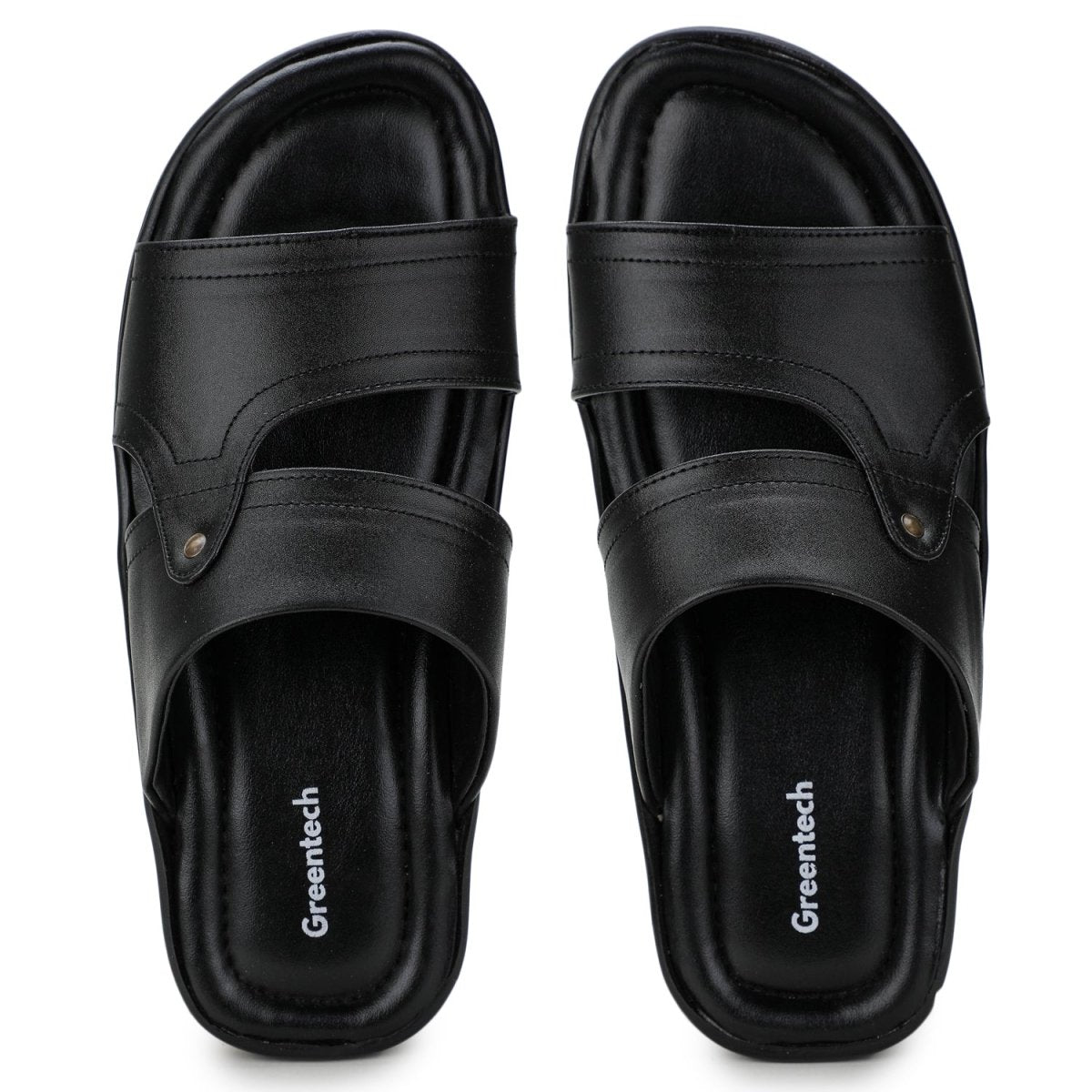Black Stitched Formal Slippers For Men - Greentech