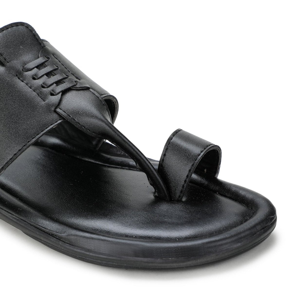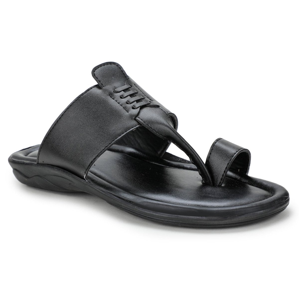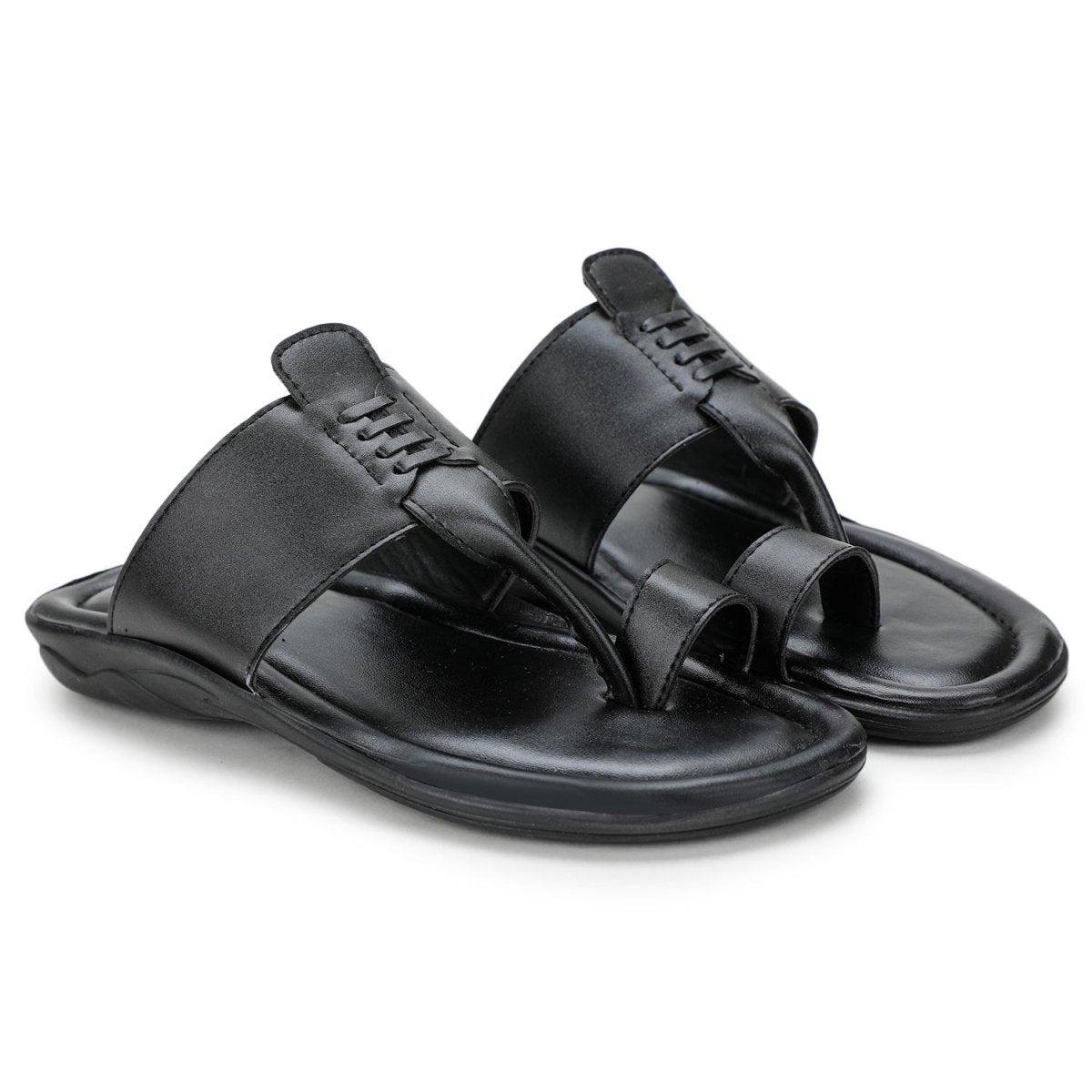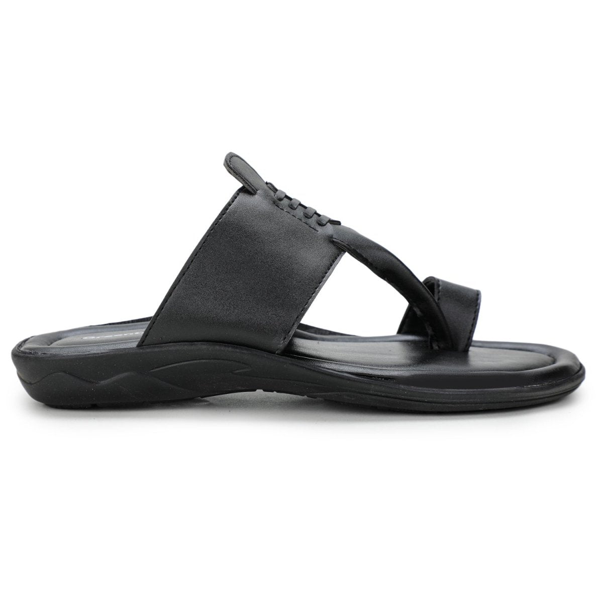 Black Stitched Kolhapuri Slippers Slip On Sandals For Men
