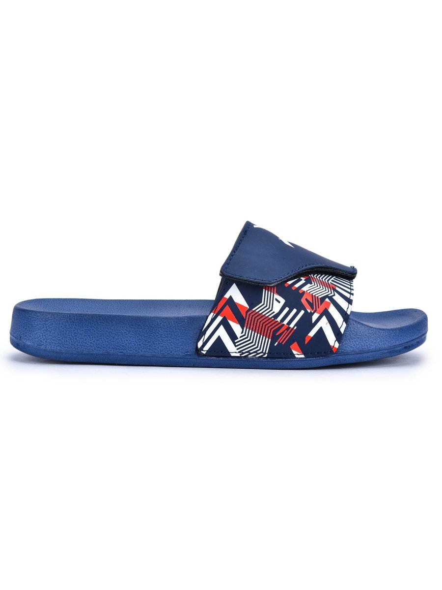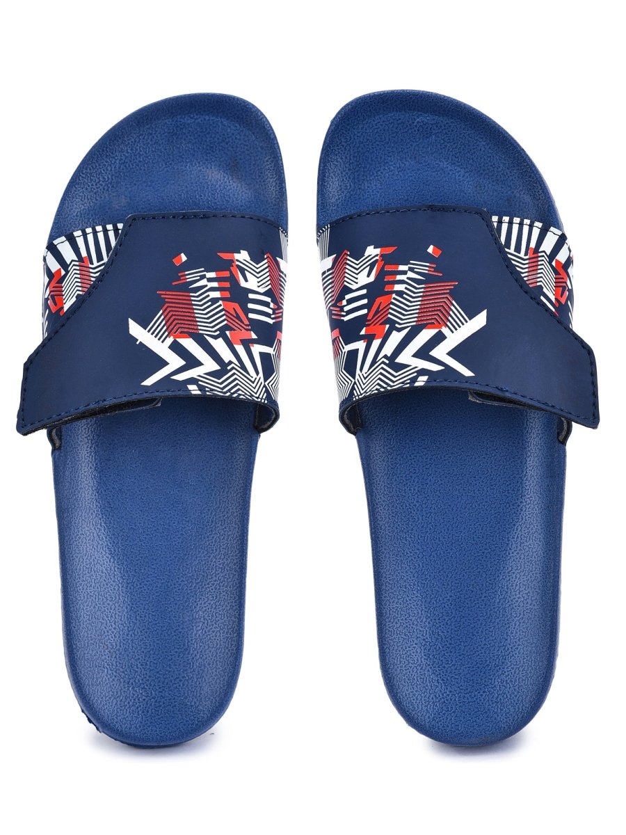 Blue Casual Velcro Printed Flip Flops Sliders For Men