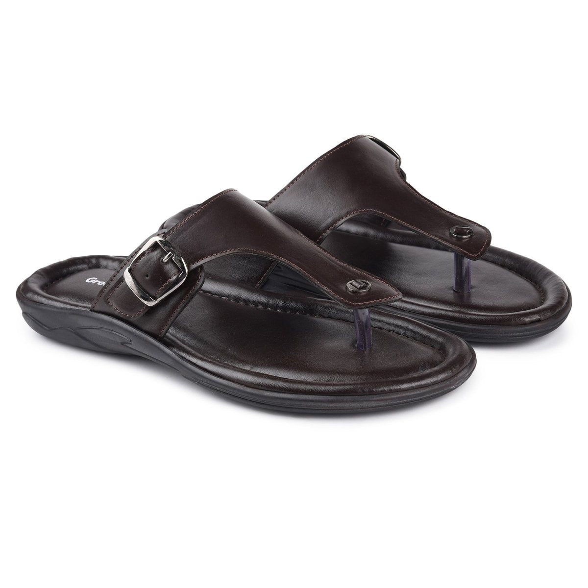 Brown Buckle Slip On Sandals For Men