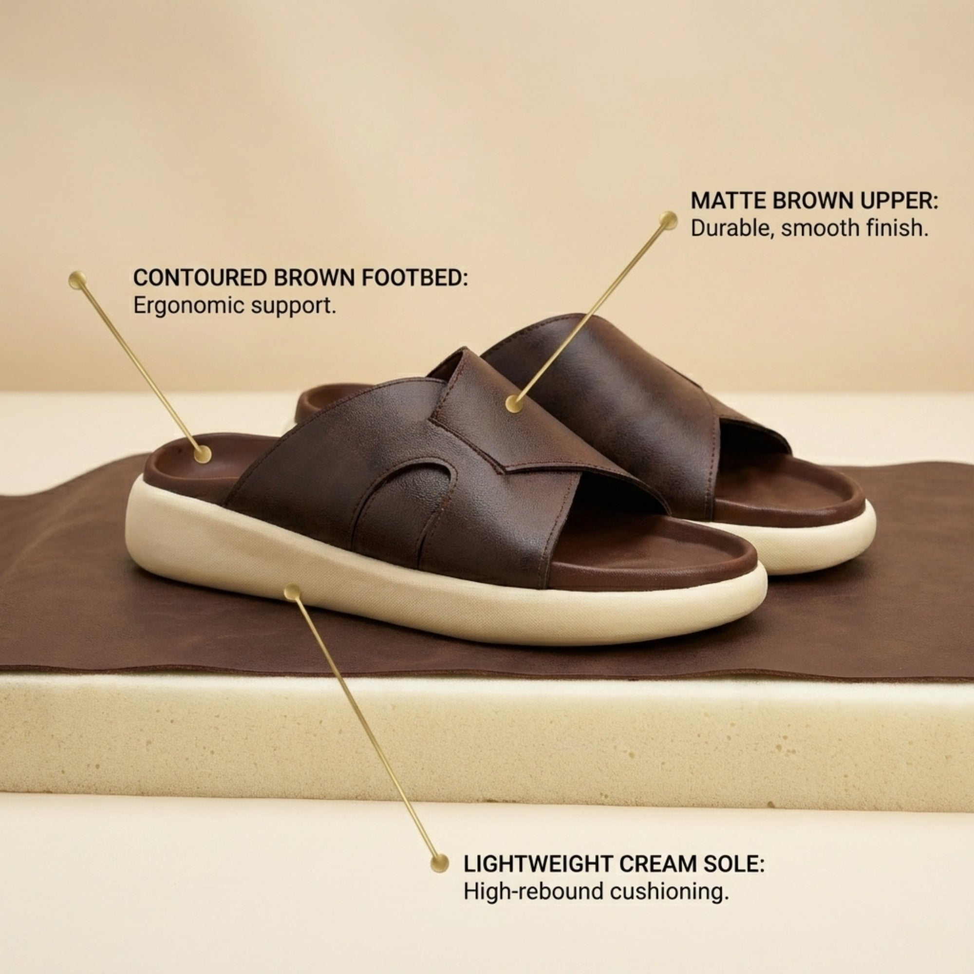 Wrapped in High-Quality Synthetic Leather, these slides offer a sophisticated matte look that pairs perfectly with jeans, shorts, or ethnic wear. It’s not just footwear; it’s your daily recharge.