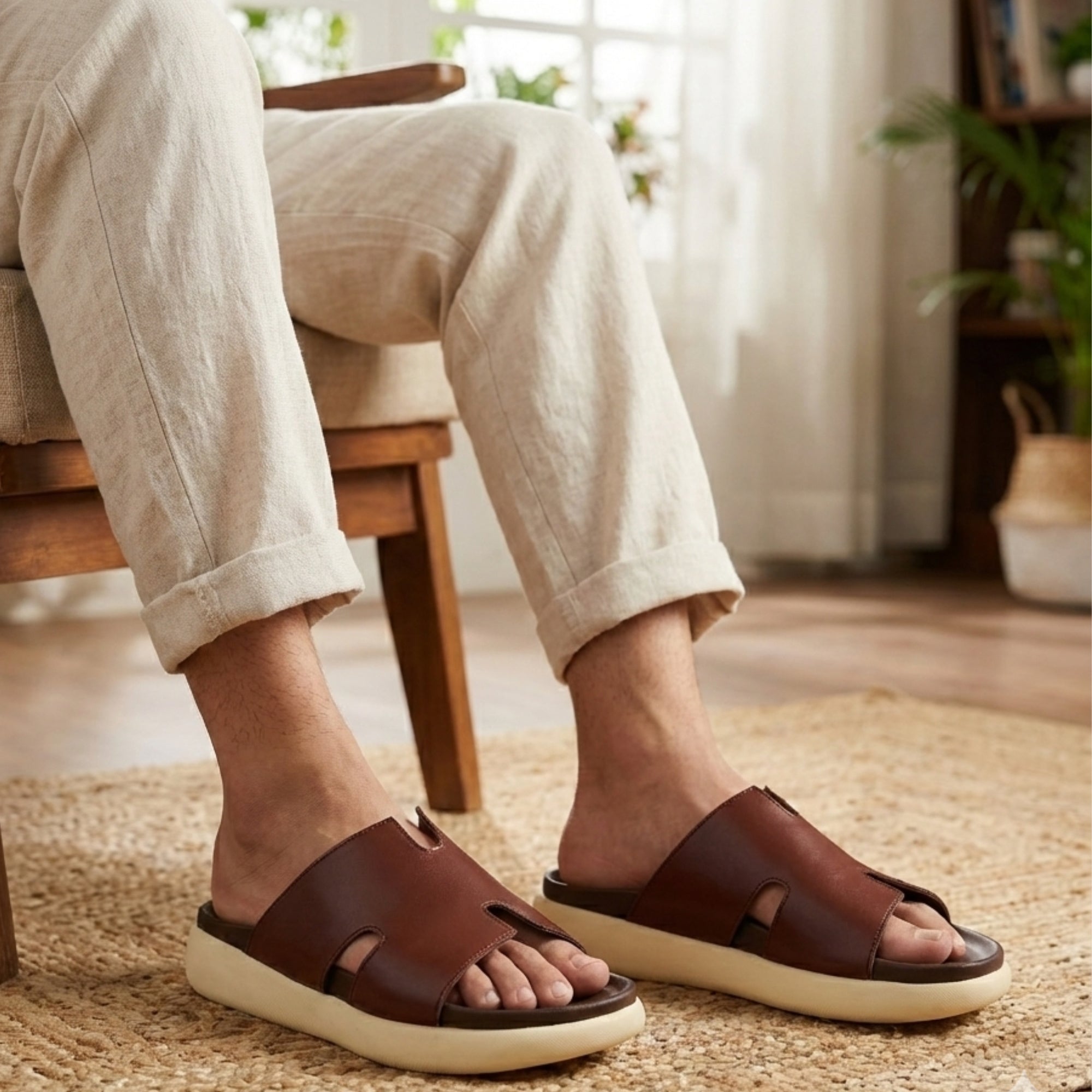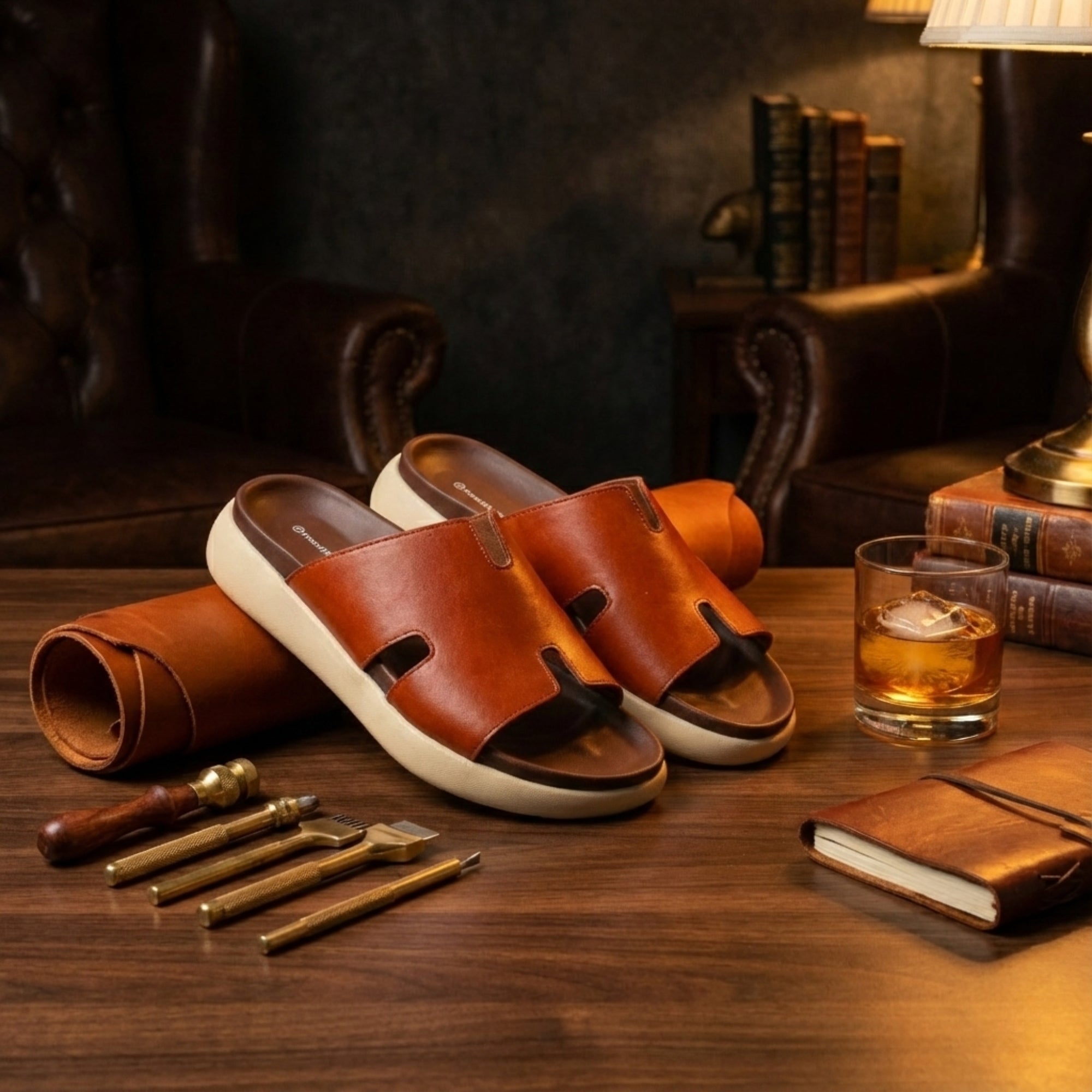 Wrapped in High-Quality Synthetic Leather, these slides offer a sophisticated matte look that pairs perfectly with jeans, shorts, or ethnic wear. It’s not just footwear; it’s your daily recharge.