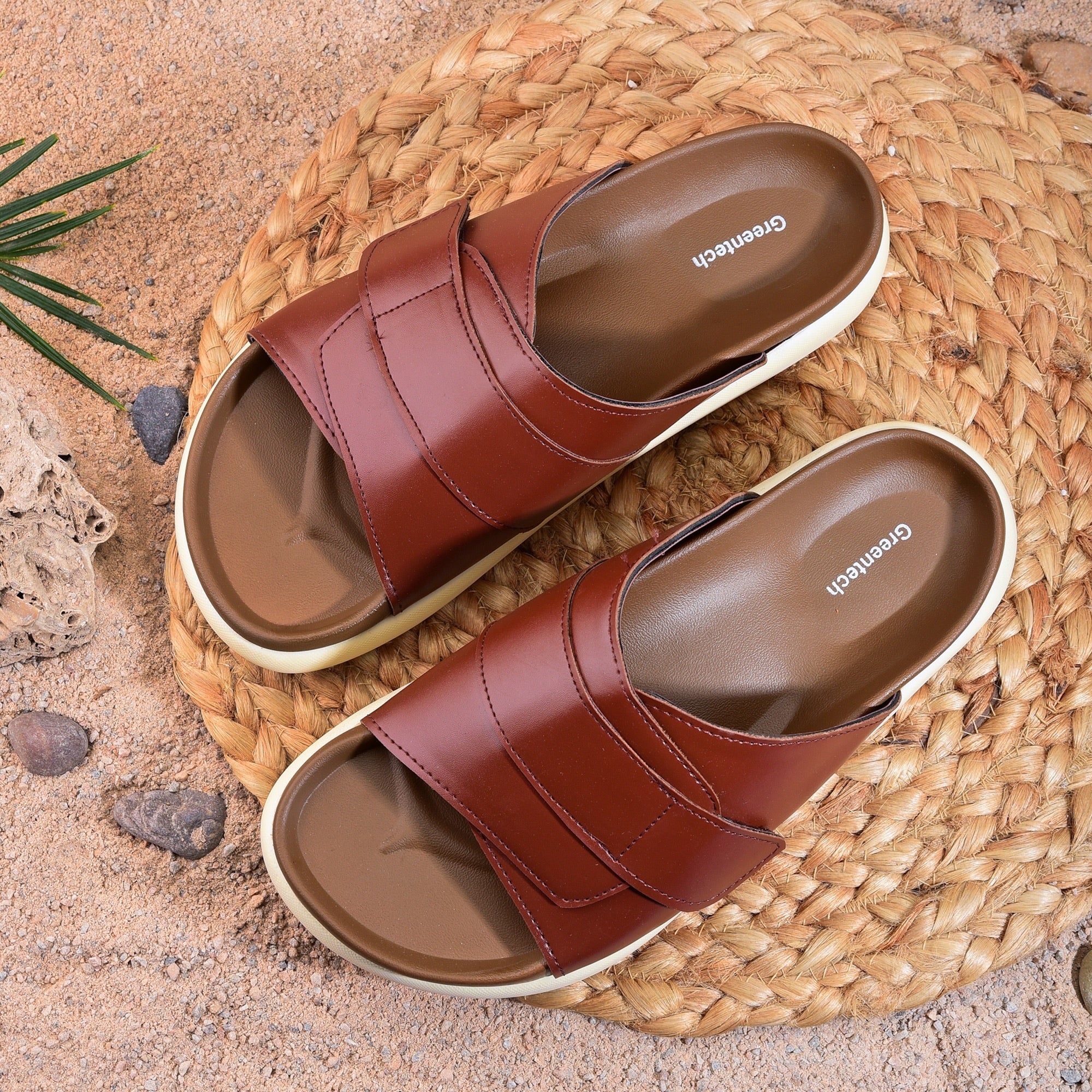 Step into a new era of walking comfort with the Greentech Cloud Rush™ Velcro Slides, designed to make every step feel weightless. This premium collection features our signature thick Cloud Platform Sole, engineered to provide superior shock absorption and high-rebound cushioning that significantly reduces foot fatigue during all-day wear. Unlike standard slides, the Cloud Rush offers a fully customizable fit thanks to its broad, adjustable Velcro strap upper, ensuring unparalleled security for narrow, wide, or high-arched feet alike. Crafted with a deep, contoured footbed that cradles your arch and a sleek, premium matte finish, these sandals perfectly bridge the gap between orthopedic-grade support and contemporary streetwear style—making them your essential go-to for effortless, stylish daily luxury.