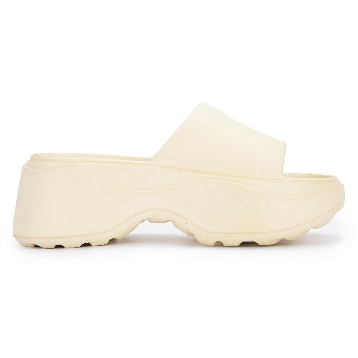 Cream Casual High Ankle Platform Flip Flops Slippers For Women