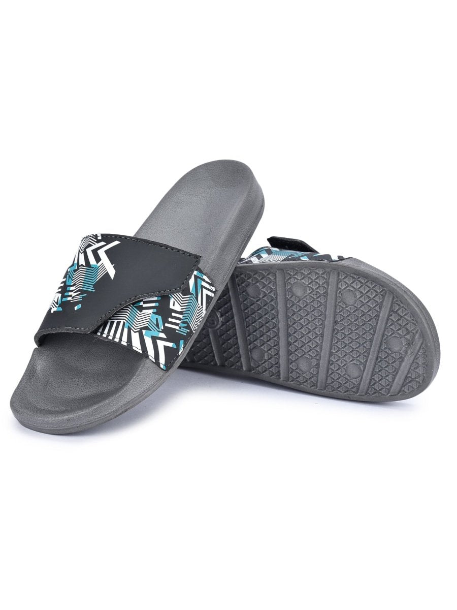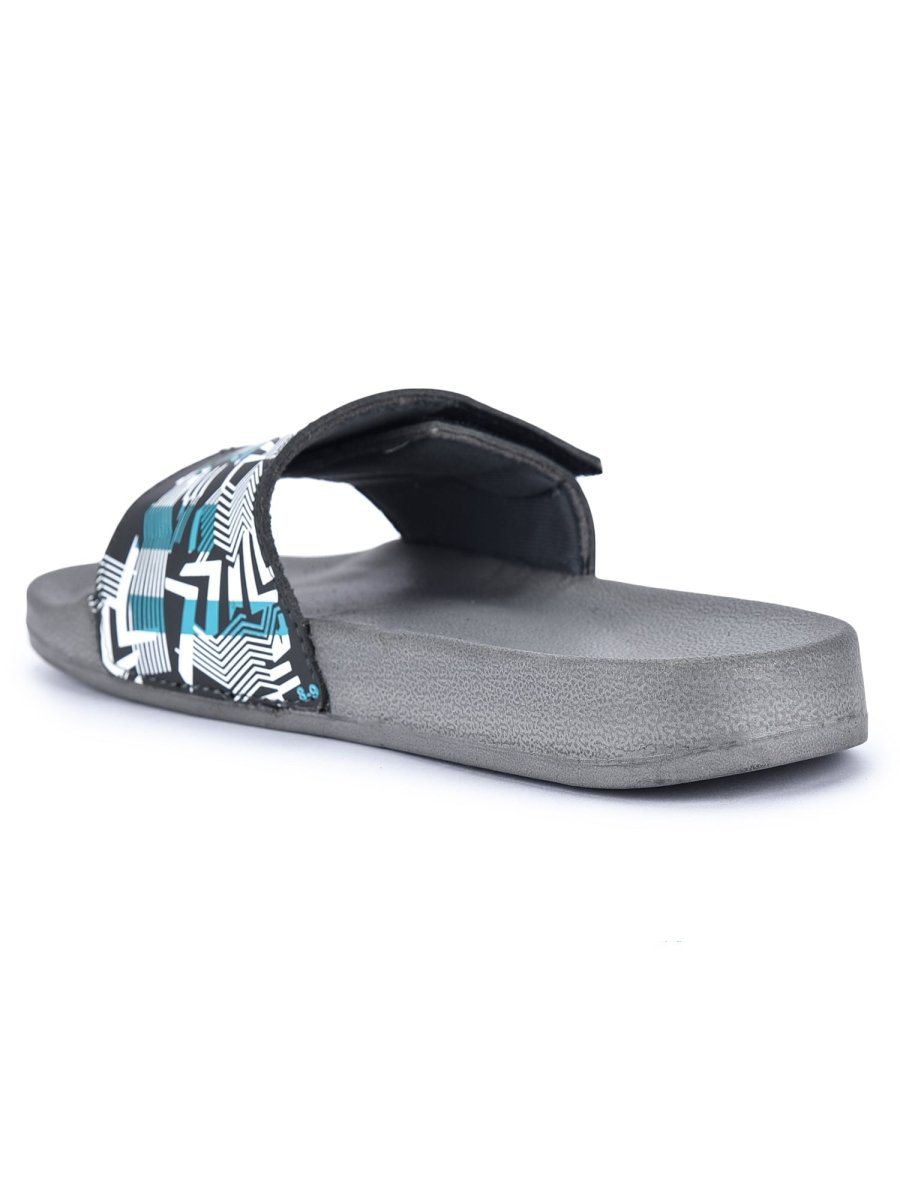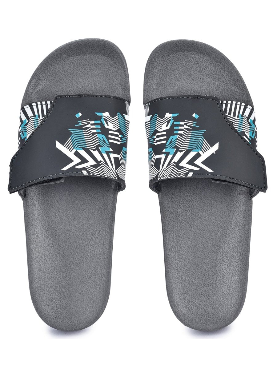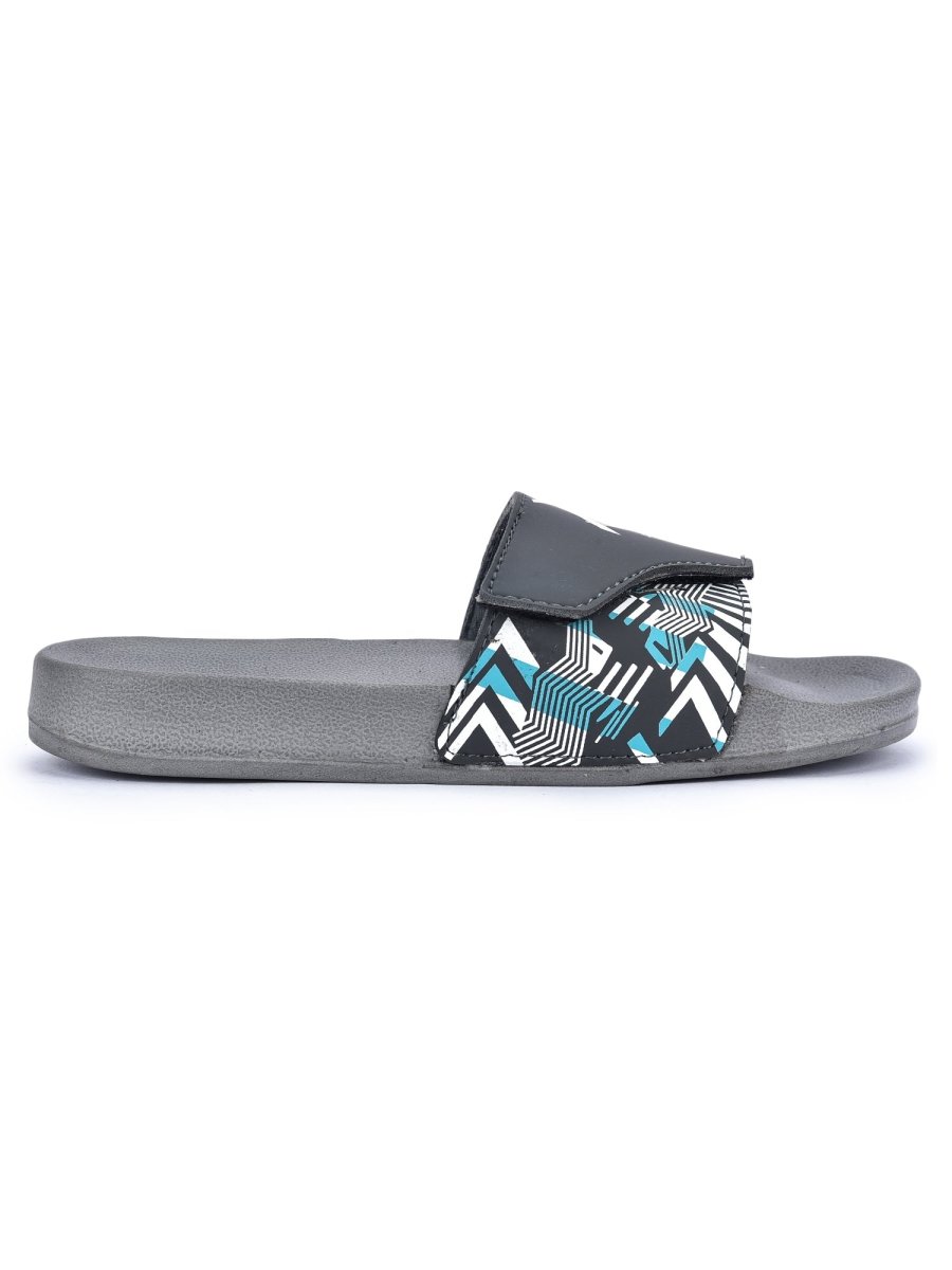 Grey Casual Velcro Printed Flip Flops Sliders For Men