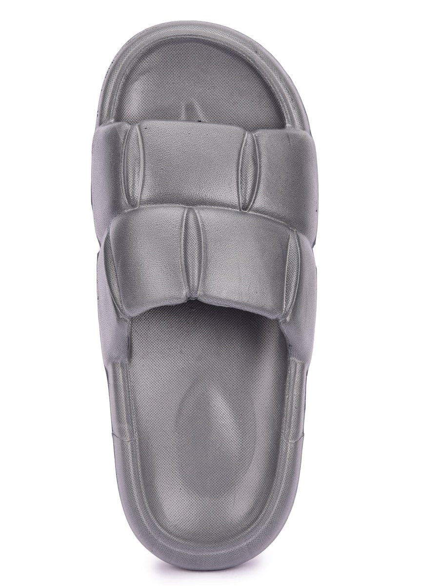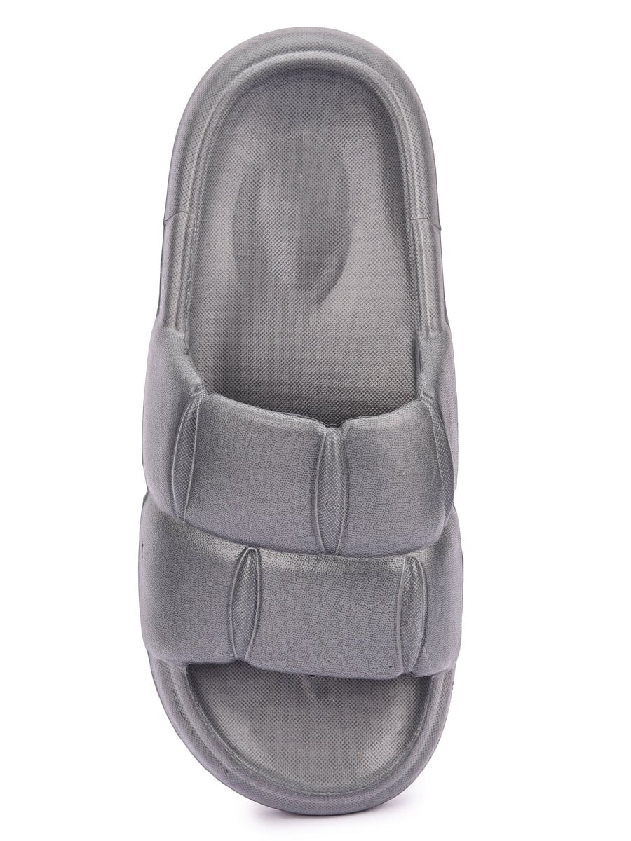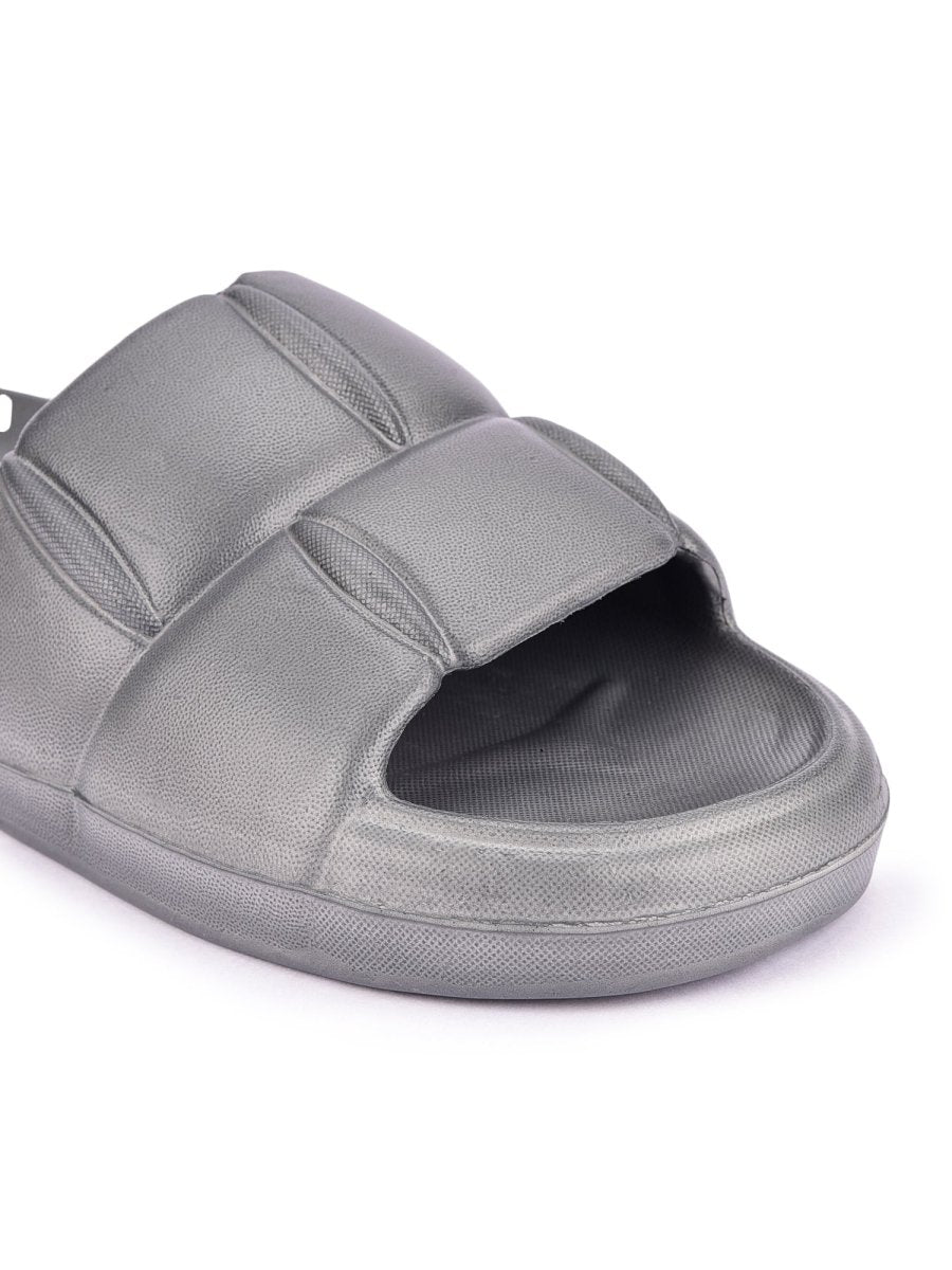 Grey Quilted Cushioned Flip Flops Slides For Men