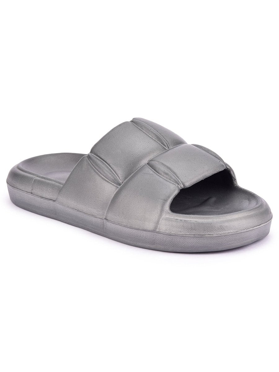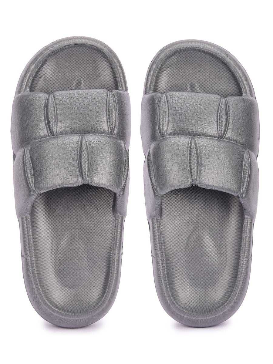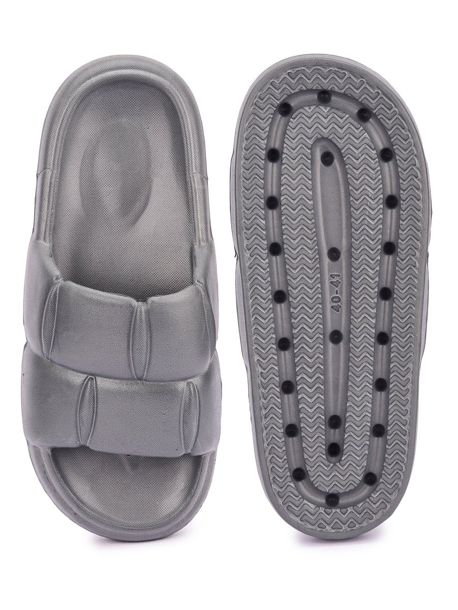 Grey Quilted Cushioned Flip Flops Slides For Men