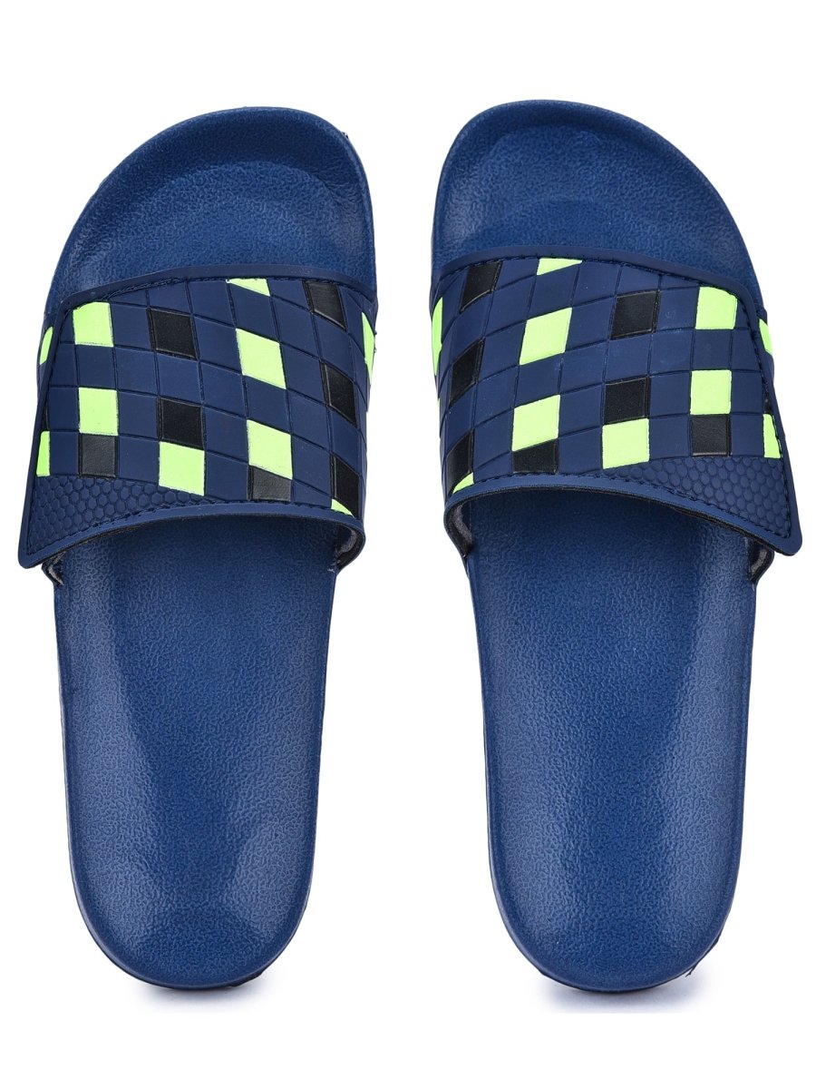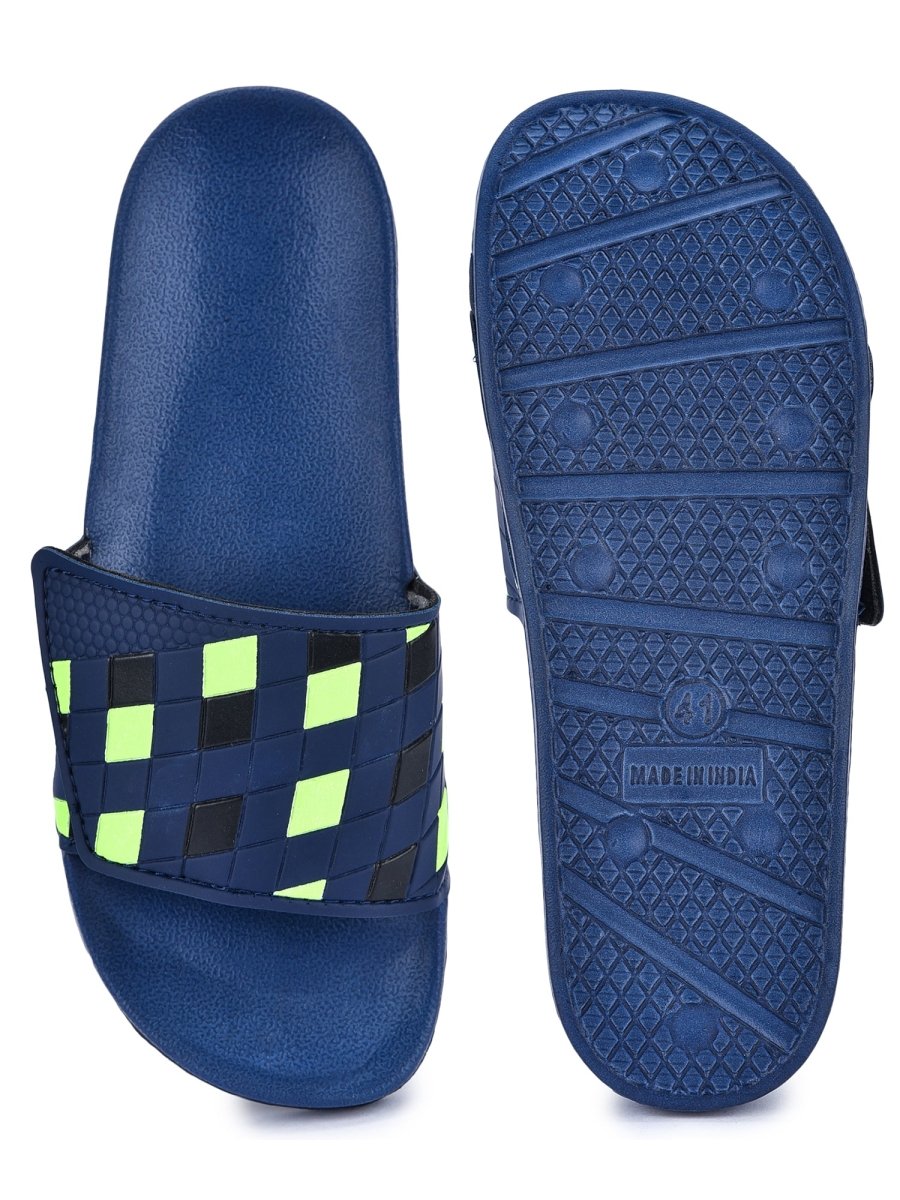 Navy Blue Casual Velcro Colorbox Flip Flops Sliders For Men
