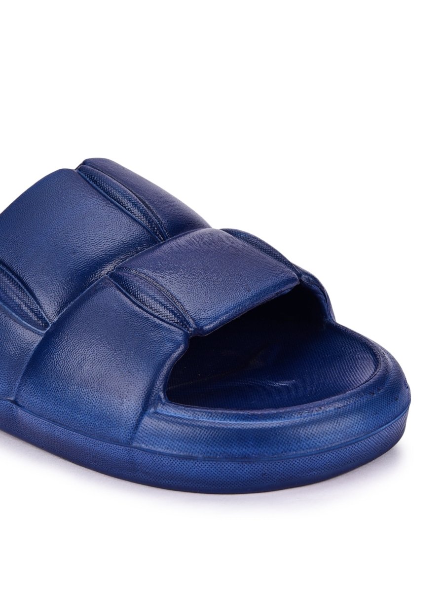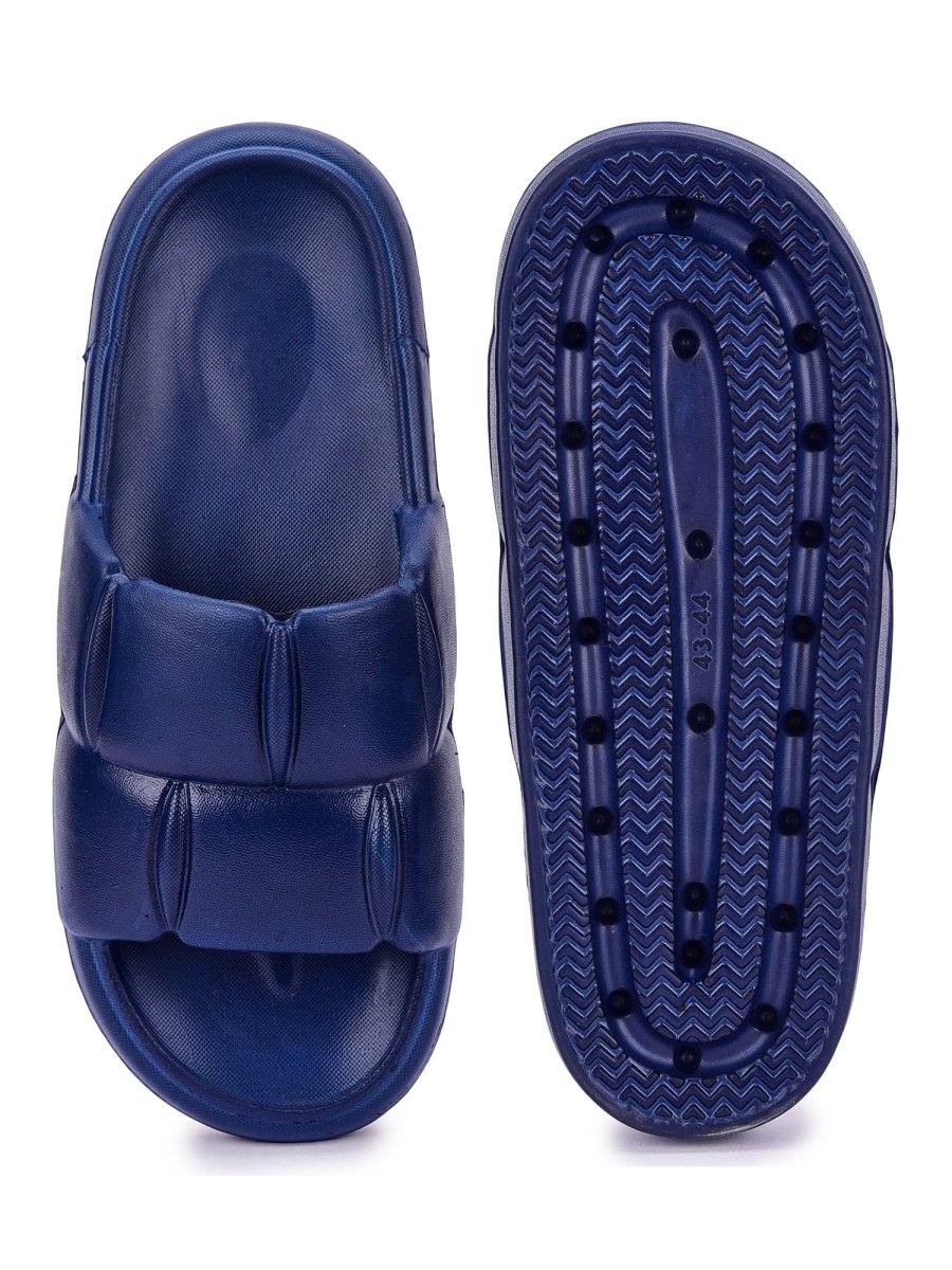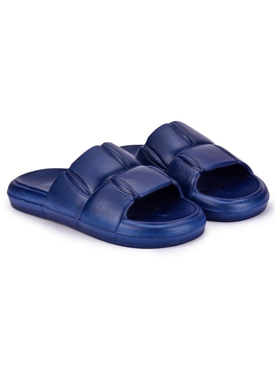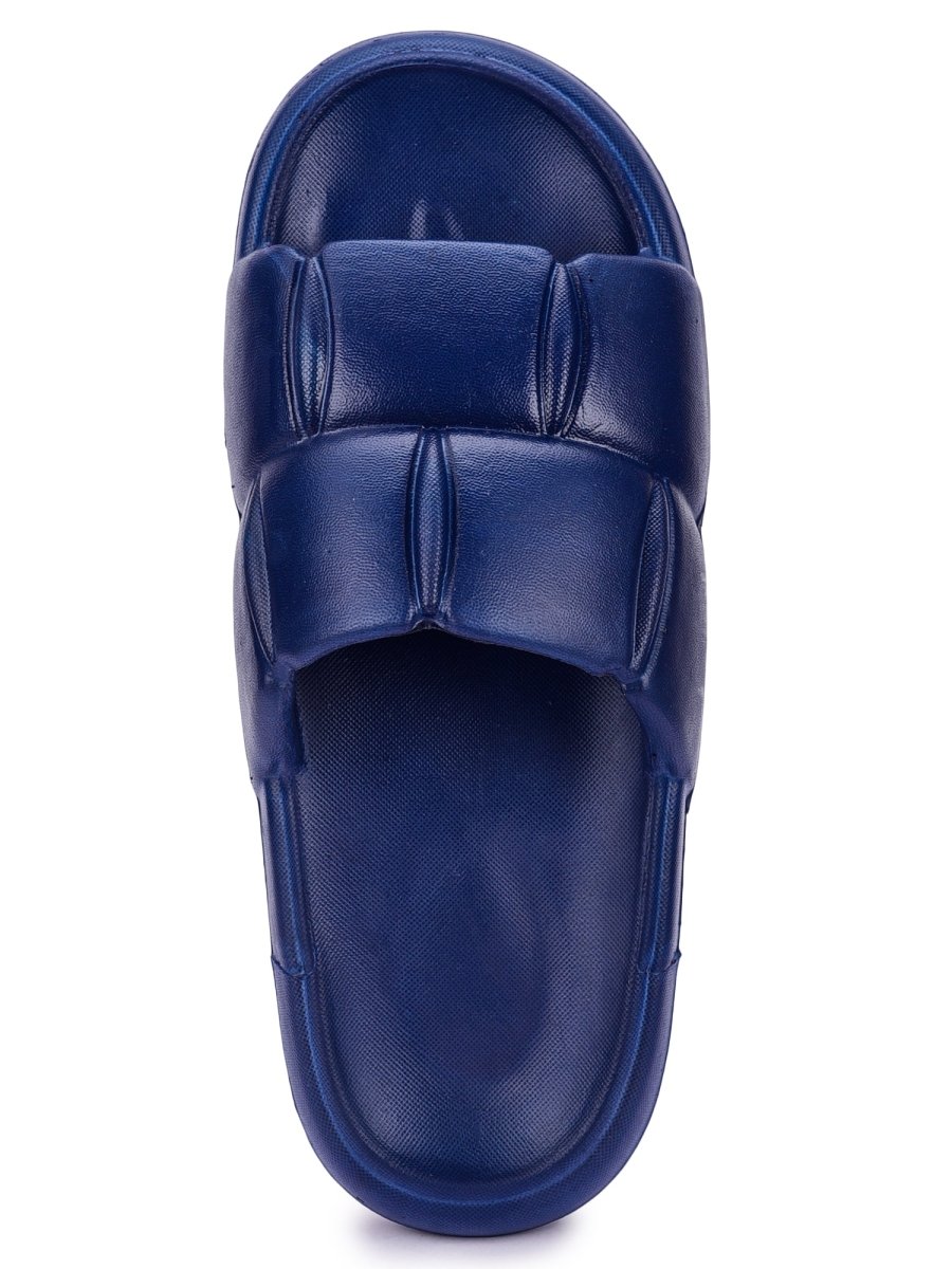 Navy Blue Quilted Cushioned Flip Flops Slides For Men