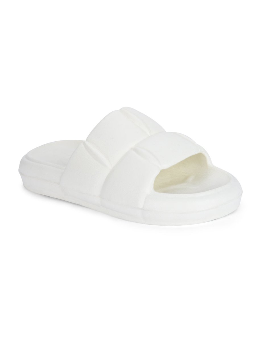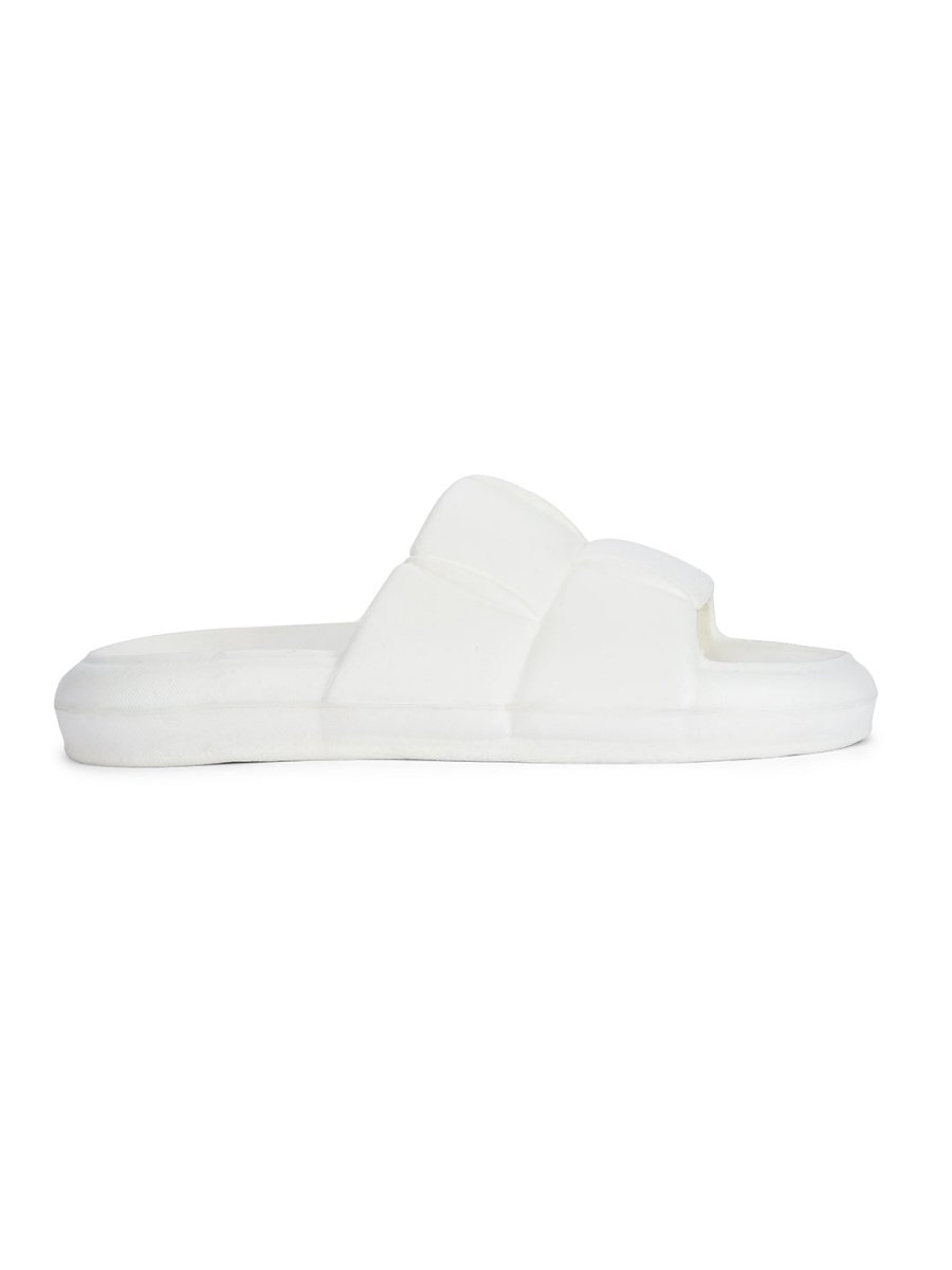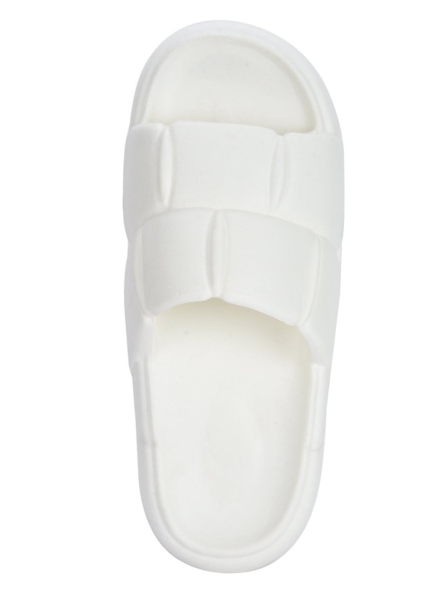 White Quilted Cushioned Flip Flops Slides For Men